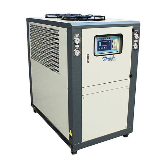 如果冷凍用水在0攝氏度以下的低溫型冷水機則是采用半封閉式壓縮機,而開啟式一般是用在制冷劑是氨的制冷系統(tǒng)中。工業(yè)冷水機的冷凝器:它是制冷系統(tǒng)的高溫高壓氟利昂從壓縮機出來后進入冷凝器中,向冷卻介質(zhì)釋放出大量熱量,被冷卻液化。